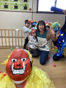 みんなで鬼は外がんばるぞー!と気合を入れて「鬼は外ー!福は内ー」と頑張ってボールを投げました!